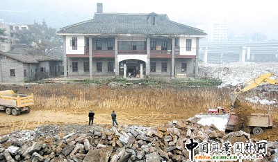 據說:是被某“開發”商在某一天的夜里拆除的,劉湘對重慶的近代發展可是個值得紀念的歷史人物,從文化上講,其故居不該拆。