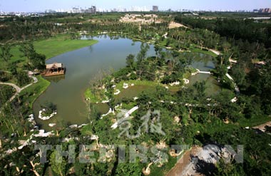 過去3年里,5000多名工人歷盡艱辛,把曾經居住著幾千名農民的村莊,改造成了密樹成林的城中靜地和戶外休閑中心。規劃人員說,這個公園能夠容納6萬人。