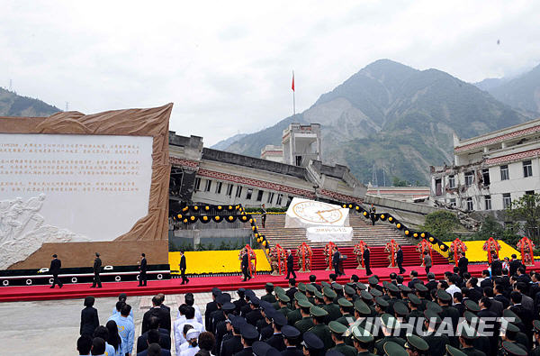 5月12日,紀念汶川特大地震一周年活動在四川省汶川縣映秀鎮隆重舉行。新華社記者 饒愛民 攝