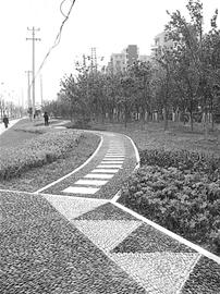 是我市首個將公園設計理念引入道路綠化的項目,現已完成施工圖。它位于新城核心區主軸線友新路的西側,全長1.8公里,綠化占地面積4.5萬平方米。與眾不同的是,這里的喬灌木沒有整齊劃一的人工裁剪,相反都是自然生長、高矮錯落有致。在綠地的小徑上,種植了香樟,香泡、梨樹等四季分明的各類觀賞花木,再輔以喬木、灌木、地被植物錯落搭配,形成了高矮層次感很強的綠化植被。