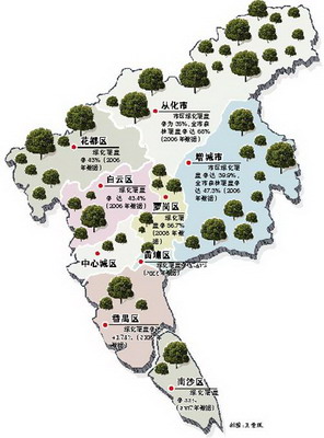 廣州綠化率數(shù)據(jù)與現(xiàn)實“貨不對板”的感覺還來源于廣州綠地資源分布不均衡。據(jù)廣州市林業(yè)局的調(diào)查,廣州北部山區(qū)林木參天,植物種類占全市總數(shù)的85%以上。