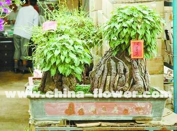 近日,一種用何首烏制作的大型盆景亮相河南鄭州陳砦花卉市場。該盆景采用附石式造型,將群生的何首烏塊根附在山石上,再植于淺盆中。其枝繁茂,根部古樸蒼勁,陳設于廳堂、院落、會場等處,自然大氣。