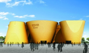 7月29日,名為“2049”的上海世博會萬科企業館奠基。這座主要由天然麥秸板為建筑材料的展館由七個相互獨立的筒狀建筑組成,仿佛七座金燦燦的“麥垛”,各筒之間將通過頂部的藍色透光ETFE膜連成一體。展館將通過熱壓和風壓兩種自然通風的模式,盡可能最大化自然通風,減少空調的使用,降低能耗。
