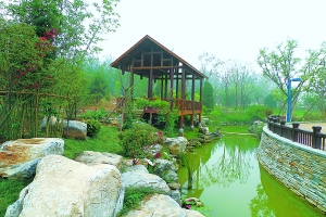 主展館的東側,被一片青山綠水、花團錦簇的美景所環繞。這處占地26.8公頃的園林,是與主展館相輔相成的室外展區。在山水環抱、綠樹層疊的大背景園林映襯下,全國各地參展單位巧妙布展。花博會期間,市民不出京便可欣賞到各具地域特色的花卉和園林景觀。