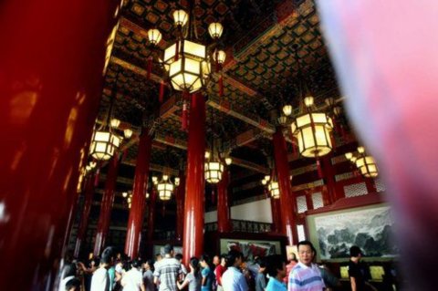 屋頂彩繪進行了重新繪制,圖案顯得清晰漂亮,現場引得不少游客仰頭觀望
