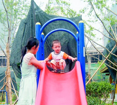 芙蓉區東屯渡社區建成后,公園里建設的兒童游樂設施特別吸引孩子們。 劉軍  攝