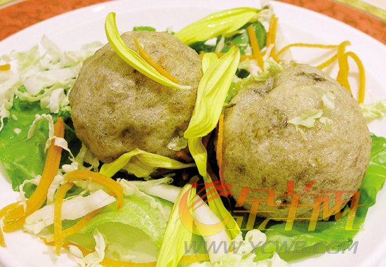 小欖的炸魚球是當地特色之一,現在加入了菊花瓣和菊花汁,更顯鮮甜。