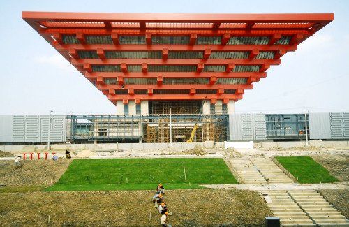 圖文:世博軸綠化景觀鋪設(shè) 中國館前綠意盎然
