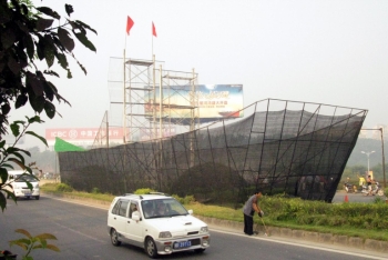 9日上午,記者在上海濱江大道桓子河大橋附近看見,幾名工人正在裝飾一艘花船。工作人員告訴記者,該船名為“揚(yáng)帆中國”,全長36米,高10米,船身為鋼架結(jié)構(gòu),船的周圍將扎滿鮮花。該工程花費(fèi)20余萬元,預(yù)計(jì)本月中旬完工。
