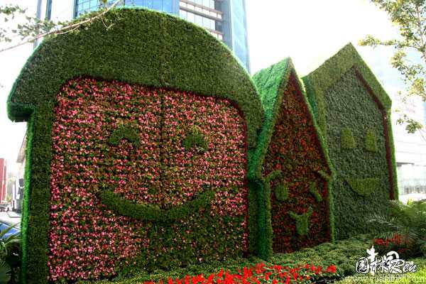擺放在西單的“信息時代”花壇展現了近些年網絡化和數字化技術的發展, “巨龍騰飛”花壇描繪了祖國60年輝煌的成就;“神舟飛天”花壇再現了我國航空航天領域實現的重大突破。國貿中心的“大地歡歌”花壇描繪了社會主義新農村建設生機盎然的面貌。東單路口的“奧運之光”花壇則用無數花朵搭起了“鳥巢”和“水立方”,再現了北京奧運會的輝煌。