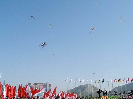 具有山東地方特色的風箏飛揚在泉韻廣場上方: