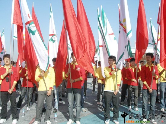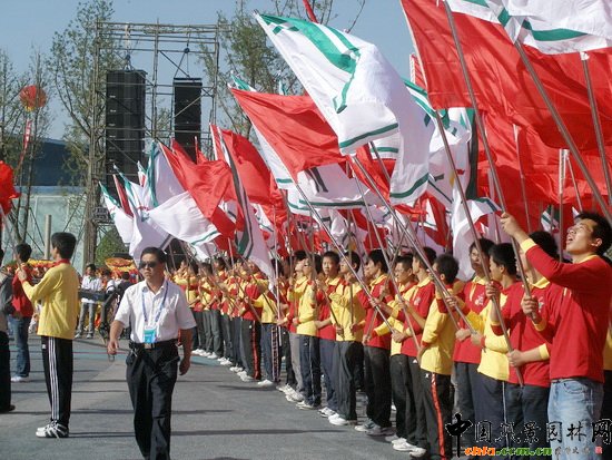 園博會開幕 百余名志愿者搖旗助威(組圖)