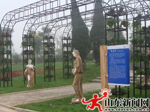 第七屆花博會山東展區著力打造的花卉博覽園既花博會室外展區,是一個兼具花卉欣賞、園林游覽和休閑娛樂的永久性花園。由山東省17地市,包括港澳臺在內的全國30多個省、市、自治區,以及14個國家、地區共同參與建設。總面積720畝,投資2.8億元,設有國際園、國內園、齊魯園、科技園、專題園、清照園、娛樂園七個展園,共90個景觀、景園。