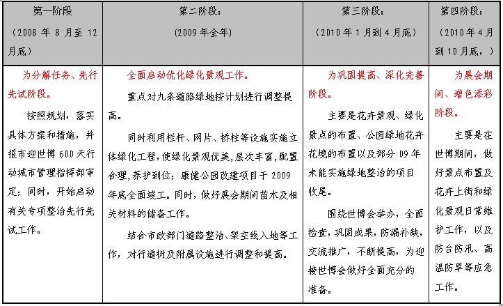 六項重點工作:1)綠化建設、2)綠化面上整治、3)綠地調(diào)整改造、4)公園景觀優(yōu)化、5)綠化景點布置 6)區(qū)區(qū)交界整治。