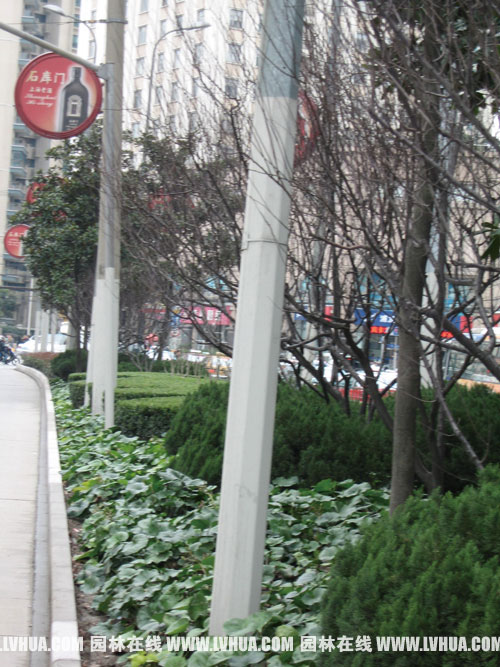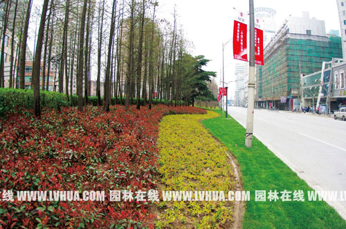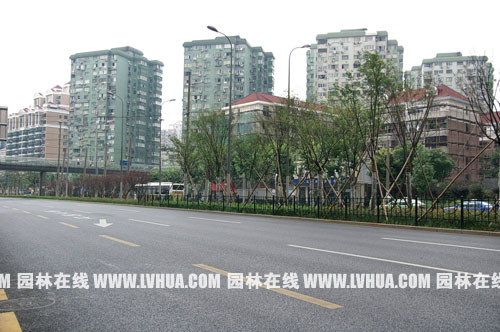 虹橋路為區(qū)域內(nèi)重要的重要主干道。徐匯區(qū)綠化局對虹橋路中央隔離帶綠地從整體上綠化,重點上美化,局部上強化,通過采取叢植、歸類方式,保留了紅李等鄉(xiāng)土樹種,增加了櫸樹、樂昌含笑等開花、色葉喬,并改變原有欄桿安裝形式,達到簡潔、大氣、色彩豐富的綠化效果。