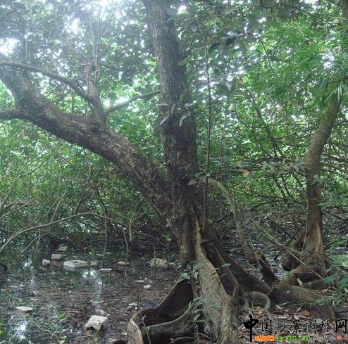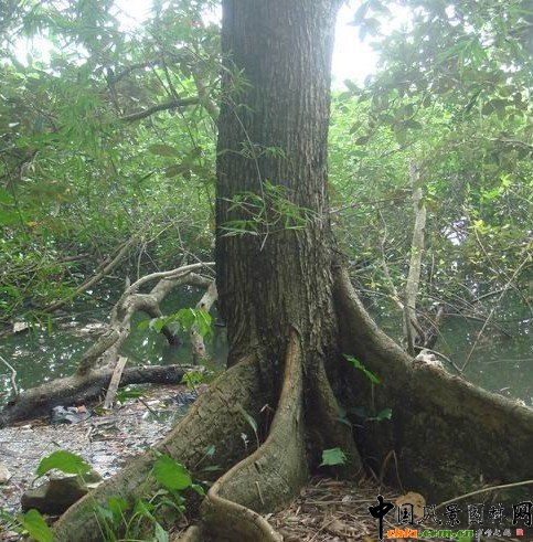 銀樹是一種珍稀的紅樹樹種,在地球已有億年的歷史,是地球上唯一的海洋森林,是國家一級(jí)保護(hù)植物。銀葉樹是梧桐科銀葉樹屬植物,生長在平均大潮高潮線以上海岸,常與半紅樹植物和其他海岸植物混生。其高大通直的樹干和發(fā)達(dá)的板狀樹根,能在鹽度40以上的環(huán)境中生長。它的根部成板狀裸露在外,虬龍似的扭曲伸展,堅(jiān)硬無比,猶如雕塑。銀葉樹因葉子背面呈銀灰色而得名,是目前世界上中國、印度和日本僅有的珍稀紅樹樹種,現(xiàn)已瀕臨滅絕。銀葉樹有調(diào)節(jié)氣候、防風(fēng)護(hù)堤、抗浪減災(zāi)、降低水體污染等重要的生態(tài)屏障作用。