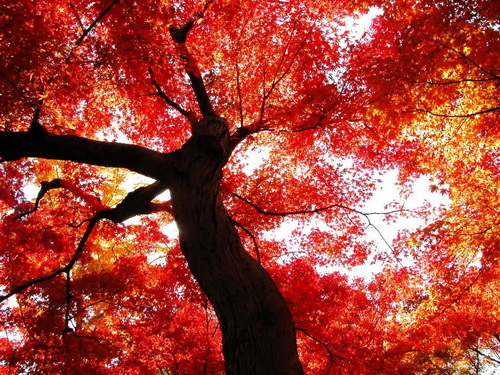 原來綠色植物的葉片里含有多種色素,這就是葉綠素、葉黃素、胡蘿卜素、類胡蘿卜素和花青素等。在植物的生長季節中,由于葉綠素在葉片中占有優勢,所以葉片保持著鮮綠的顏色。到了秋季,氣溫下降,葉綠素合成受阻,遭到的破壞則與日俱增,所以含葉黃素、胡蘿卜素多的葉片就呈黃色。紅葉樹種此時在葉片中產生了一種叫花色素苷的紅色素,所以葉片呈現出美麗的紅色。