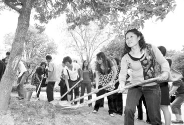 26日,在桂林市園林植物園,名叫“桂花”的市民們共同種下一株桂花樹。