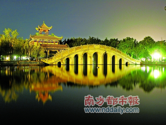 今年,寶墨園附近還新建了南粵苑,是寶墨園的姐妹園,與寶墨園只舉步之遙。最吸引游客的是貼了1斤黃金的“六星級公廁”,這座公廁造價800萬元,入園游客免費使用。南粵苑有皇家園林雍容華貴的特色,貼金潮州木雕隨處可見,全園用掉了20多斤黃金。