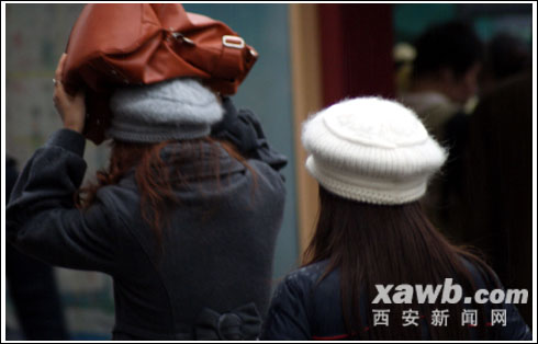昨日西安迎來一場冬雨,圖為未帶雨具的行人用皮包遮雨。11月以來我市連續出現4個“差天”,這場降雨對提高空氣質量起到了一定作用。記者 謝偉 攝