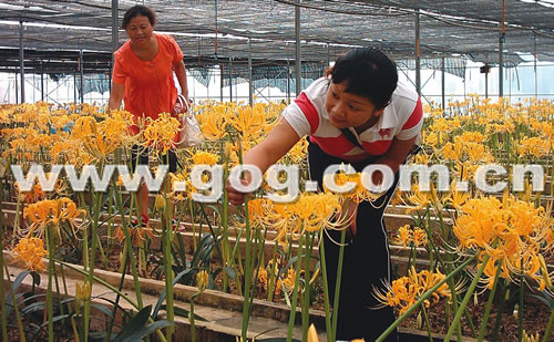 據了解,金花石蒜本是烏當本土產的一種野生花卉,生長在田邊地角的陰濕處,常在夏秋季節(jié)開放,有紅、黃等花色。因其花色鮮艷、瓣形迷人、花稈修長、適宜插花等特點而備受人們的喜愛,曾被確定為北京奧運會使用花卉。從2000年起,有關部門開始對這種野生金花石蒜進行人工培育、馴化,目前已在烏當區(qū)東風鎮(zhèn)、百宜鄉(xiāng)種植金花石蒜3000多畝,出口日本、荷蘭等國家,已成為烏當區(qū)花卉產業(yè)中的一大支柱。