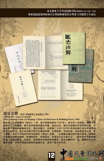 中國風景園林網 2009年11月14日,陳植造園思想研討會暨江蘇省園林規劃設計理論與實踐博士生論壇在南京林業大學召開。此次會議的主題是"傳承·交融"。江蘇省建設廳、教育廳領導和來自國內外的專家學者及風景園林院校師生共計500余位參加了此次會議。