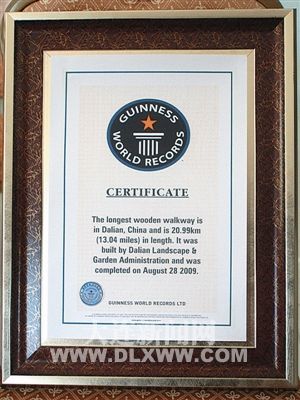 “世界上最長的棧道位于中國大連”,記者昨日從市風(fēng)景園林處獲悉,繼今年9月1日濱海路木棧道被載入中國上海吉尼斯紀(jì)錄后,吉尼斯世界紀(jì)錄總部已于本月17日正式頒發(fā)證書,證實全長20.99千米的濱海路木棧道為目前世界上最長的木棧道。