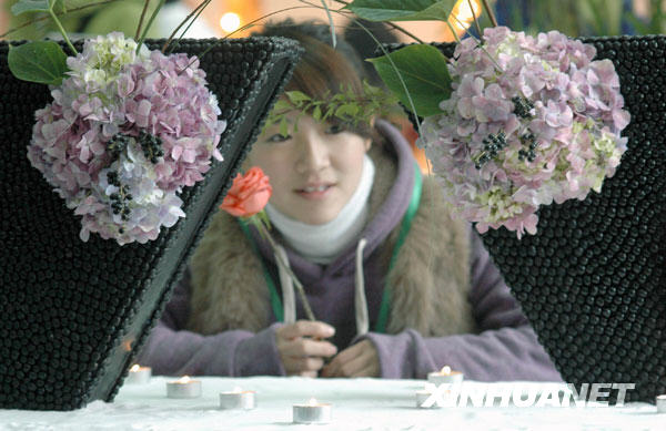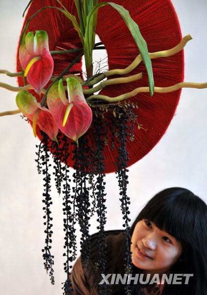 11月29日,一名參觀者在欣賞插花作品。新華社發(陳立希 攝)