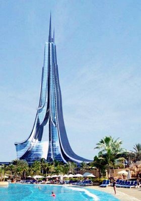 迪拜塔又稱迪拜大廈或比斯迪拜塔,有162個樓層,總高度818米,比臺北101足足高出310米。迪拜塔由韓國三星公司負責營造,在2004 年9月21日開始動工,預計將在今年12月底前完工啟用,總耗資約800億美元。2007年初開始已有玻璃帷幕安裝,而金屬外墻也于2007年6月開始施工安裝。
