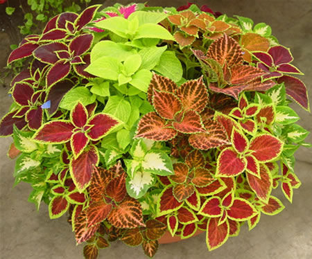 彩葉草,顧名思義,因葉子的絢麗多彩而聞名,為唇形科彩葉草屬多年生草本植物,是盆栽、庭院、公園布置花壇、列植、叢植等大面積美化環境的首選觀葉植物。彩葉草與其他花卉植物搭配種植,通過強烈的色彩對比,可襯托出詩情畫意的景觀效果,是布置園林花壇的理想植物。彩葉草園林造景方式很多,無論是花壇、花境,還是林帶、花海,抑或公園、街頭綠地,彩葉草都是一個極其搶眼的植物品種;不管是單獨置景,還是與其它植物搭配,都能營造出漂亮迷人的景觀效果。