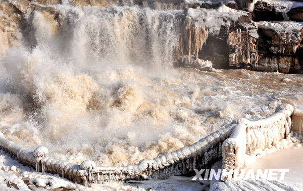 12月22日拍攝的壺口瀑布冰凌景觀