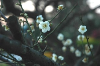 梅花和李花、梨花等薔薇科落植物相同,冬日葉片會先落盡,等待隆冬寒風吹送以后,便以一樹的白花搶先綻放,將逢春開花的群花全給比了下去。中正紀念堂內搶先開的梅花,和士林官邸、陽明山和四獸山一樣,都是用來食用的果梅花。