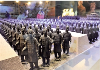18日,用巧克力制成的560尊秦始皇兵馬俑現身世界巧克力夢公園。當天,落戶奧林匹克公園的世界巧克力夢公園首次對外展示了一批精心制作的巧克力雕塑群。