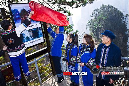 1月25日上午,張家界“南天一柱”(又名乾坤柱)正式更名為《阿凡達》“哈利路亞山”,當地數名身著土家族服裝的原住居民為名稱標識牌舉行了揭牌儀式。儀式由袁家界管委會主任宋志光主持。