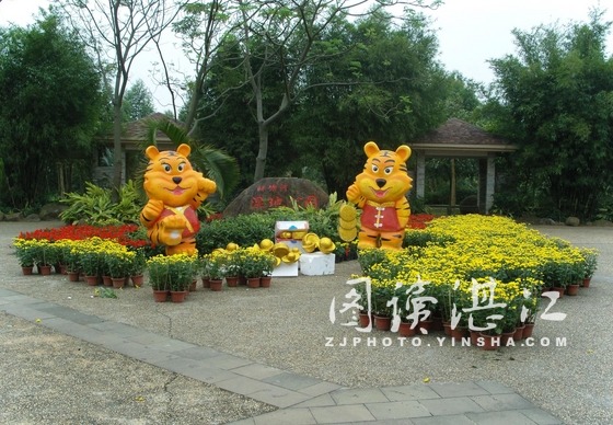 這些泡沫雕塑分別擺在濕地公園的東西兩面路口和中心廣場,制造有老虎,金童玉女,各種蔬果等,栩栩如生,其主題是吉祥如意 、招財進寶、虎迎新春。