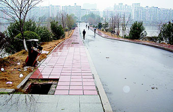 “草地上到處是垃圾,而且最惡心的是,草地上有不少令人發(fā)嘔的大便!湖面上也漂浮著垃圾……”周先生向記者介紹,東湖公園建設之初,附近居民滿心歡喜,充滿期待。當公園初成時,看著青草綠水,他們都按捺不住激動的心情,紛紛涌向公園內(nèi)。但幾周過后,情況就變了,公園內(nèi)臟亂不堪,頓時游興全無。更讓人擔心的是,因公園尚未完工,管理又不到位,坑洞密布,路燈缺失,存在不少安全隱患,這讓不少市民望而卻步。
