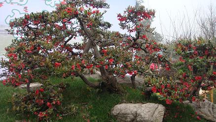 “碧雞海棠天下絕,枝枝似染猩猩血”,海棠花姿瀟灑,花開似錦,自古以來是雅俗共賞的名花,素有花中神仙、花貴妃之稱。在成都市第七屆海棠會上,以海棠聞名的雙流棠湖公園廣收天下名品,1萬多株貼梗海棠、垂絲海棠、西府海棠、日本海棠等近20多個品種集體亮相,總價值達200多萬元,而其中側面入口的一組市值20多萬元的海棠組合盆景便是本次海棠花會的第一名角了。中國盆景藝術家協會副秘書長吳敏告訴記者,在這組海棠中最大一株種植年限至少超過50年,融觀賞性、藝術性于一體,在全國海棠組合盆景作品中都十分罕見,絕對是名品!