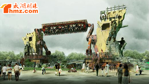 遠眺淹城春秋樂園,會看到一個造型別致的雕塑,三根由青銅和漢白玉鑄成的景觀柱“龍之翼”,猶如飛龍在天,叱咤風云,承載著淹城的希冀和夢想。更引人注目的是,大道兩旁還有5座成語故事雕塑,“公好龍”、“一葉障目”、“守株待兔”、“舉棋不定”、“邯鄲學步”等耳熟能詳的故事,在這里一一生動顯現。