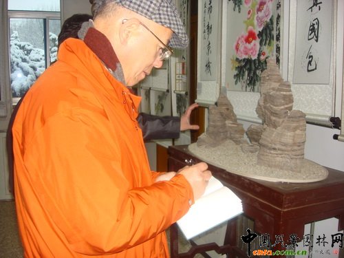 藤井英二郎教授還仔細(xì)觀賞了山石盆景,并仔細(xì)記錄下石種名稱。他說,中、日兩國在石材的運(yùn)用上差別很大,很多種石頭他都沒有見過。
