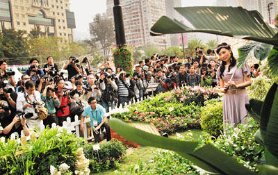 本屆香港花卉展以“富貴菊”為主題,18日預(yù)展更得香港小姐蒞臨擔(dān)任模特兒,吸引不少拍友聞風(fēng)到場(chǎng)。(圖片來(lái)源:香港文匯報(bào))