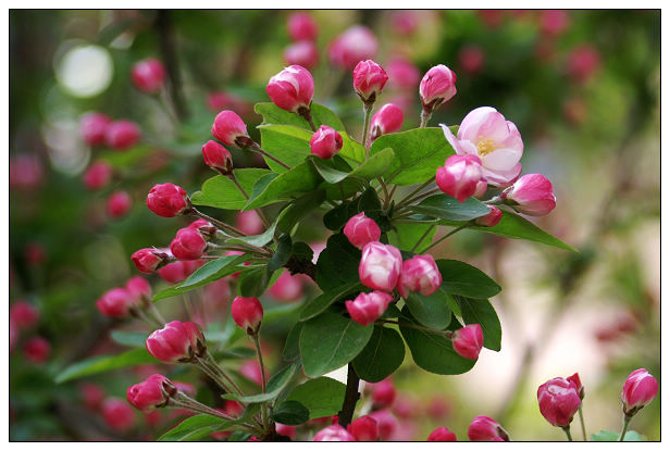 故宮御花園專門植有西府海棠,春夏之交的時候開得最旺,迎風 俏麗,花姿明媚動人,為名家園林增色不少。