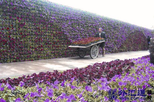 圖為園區內10萬盆花卉搭建的立體花卉墻