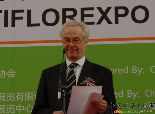 荷蘭駐華大使裴靖康先生到會致辭。他表示在西方國家經濟低迷的時期,中國對花卉和植物的需求在快速增長,不僅體現在數量上,同時也體現在品種的多樣性上;荷蘭在所有參展國中有最大的展區,由14家知名的荷蘭花卉公司組成;為了能夠更好的與參會者分享荷蘭的技術和理念,明天(4月15日)荷蘭企業還將舉辦為期一天的技術研討會。