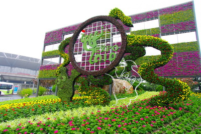 為烘托迎世博氛圍,豐富上海南站廣場景觀色彩,日前,徐匯區綠化部門在南站南廣場旁精心營建了大型綠化造型景點“海寶虎年迎世博”,聳立的景點氣勢不凡,與現代化的南站相互映襯,熠熠生輝。景點以世博海寶標記與虎年圖騰為題材,突出虎年翻騰,海寶迎客,共慶世博這一主題,背景采用鋼結構骨架制作出花墻造型,利用色彩豐富的應季花卉布置,主景凸現歡迎南站出入旅客的海寶和虎型標記,并在主景周邊搭配花形成月型五彩繽紛的景觀意境,營造出市民熱愛世博,期盼世博的濃郁氛圍。