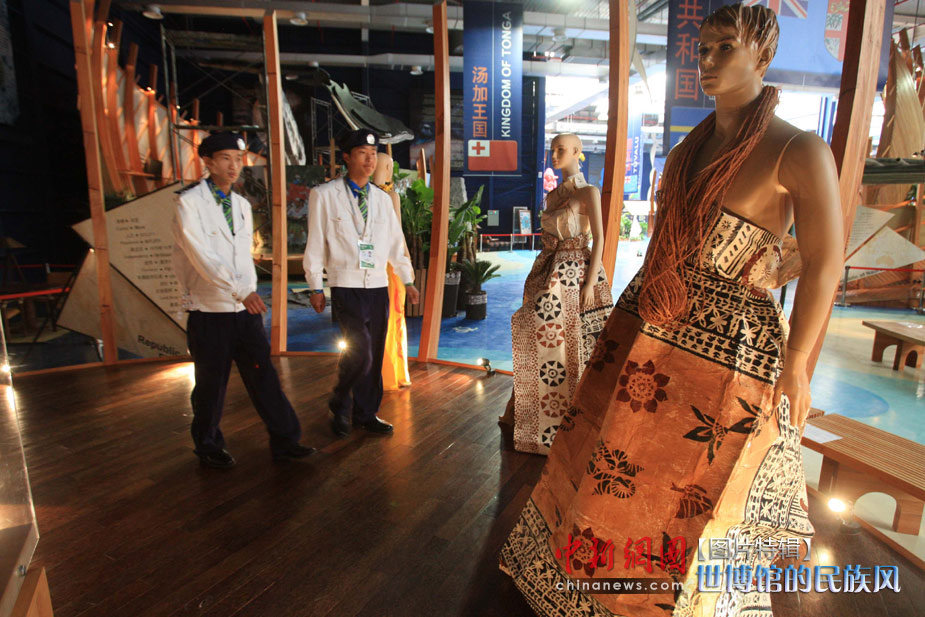 5月1日,上海世博會開園第一天,斐濟國的手繪樹皮時裝在太平洋聯合館展出。