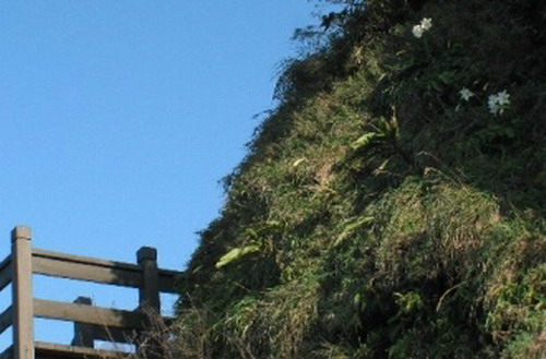 今年各地百合大多早開,但受天氣忽寒忽暖影響,盛花期相對延遲許多,賞花時間也拉長不少。綠島的野百合,就像臺灣本島的北海岸、東北角海岸相同,大多沿著環島公路旁山壁分布,大多是在人們很難攀爬到達的高聳峭壁上頭。