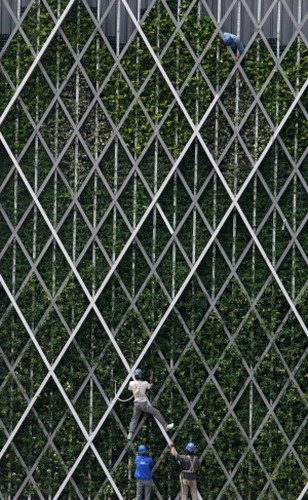 世博會主題館擁有世界最大的5000平方米生態綠墻   早報資料