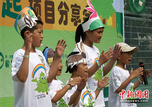 6月5日是“世界環境日”,北京數所學校的“根與芽”小組學生到北京育才中學現場場展示了他們的愛樹行動成果和環保創意!熬G色陽光行動”是珍古道爾(北京)環境文化交流中心暨根與芽北京辦公室主題項目之一,2010年綠色陽光行動的主題是愛護樹、保護森林,北京市約有40所中小學校及高校的根與芽小組參加,他們在指導老師和大朋友的協助下開展為期兩個月的與保護樹木相關的豐富多彩的活動。今天的分享會,既是他們兩個月來活動成果的展示,也是他們與更多人分享環保理念的好機會。