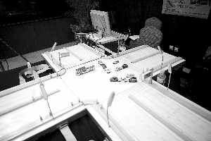 在一張大桌子上,擺放著建言人丁靖宇自行研究并制作的“智能交通信號(hào)管理系統(tǒng)”模型。56歲的丁靖宇是北京一家技術(shù)開發(fā)公司的管理人員,他耗時(shí)兩年多,設(shè)計(jì)完成這個(gè)“智能交通信號(hào)管理系統(tǒng)”。因?yàn)槟P洼^重,家住6樓的丁靖宇在妻子的協(xié)助下,于13日中午將模型從家里搬出來,運(yùn)到建言會(huì)現(xiàn)場(chǎng)并組裝好。