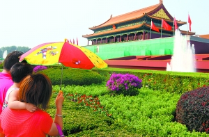 每年“十一”前夕,天安門(mén)城樓都要進(jìn)行外墻粉刷,隨時(shí)對(duì)城樓的結(jié)構(gòu)進(jìn)行防腐檢測(cè)等,這些工作幾十年來(lái)從未間斷過(guò)。本次粉刷工作不會(huì)影響游人的正常參觀活動(dòng)。(記者金可文 記者 戴冰攝)